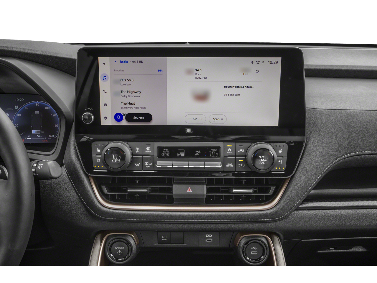 • Leather-trimmed with Ultrasuede® 67 front- and second-row seats; heated and ventilated front seats; 10-way power-adjustable driver's seat including power lumbar support; 8-way power-adjustable front passenger seat; seat memory function