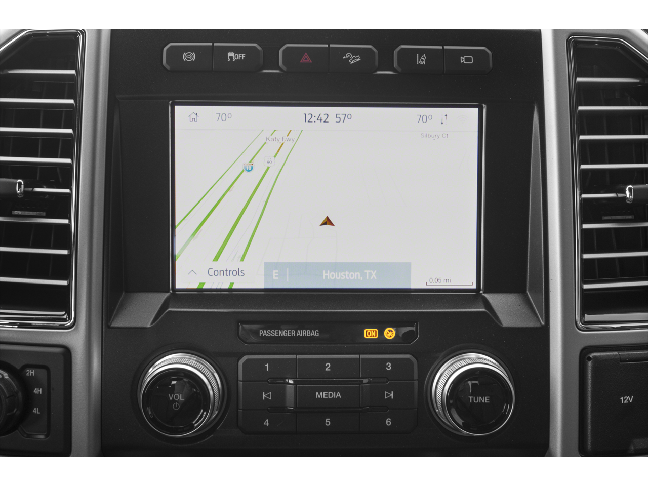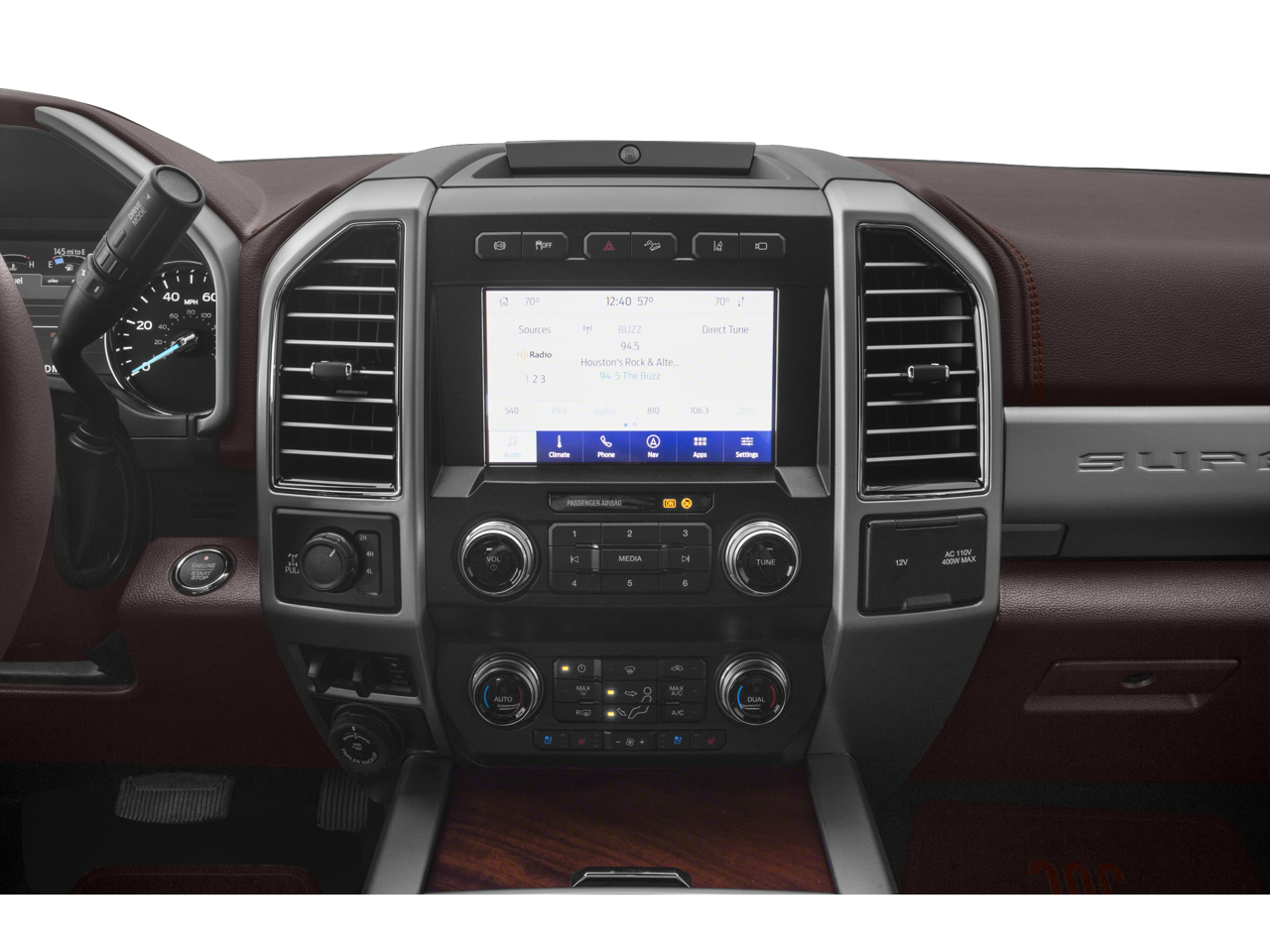 4WD, Adaptive Cruise Control, Apple CarPlay Android Auto, Automatic Emergency Braking, Backup Camera, Blind Spot Monitoring, Bluetooth®, Heated Seats, Leather Seats, Navigation System, Parking Sensors, Rear Cross Traffic Alert, Remote Start, Sunroof/Moonroof, Tow Package Trailer Package, 10 Speakers, 110V/400W Outlet, Air Conditioning, Alloy wheels, AM/FM radio: SiriusXM, Auto High-beam Headlights, Auto tilt-away steering wheel, Auto-dimming Rear-View mirror, Automatic temperature control, Compass, Delay-off headlights, Flow-Through Console, Front Bucket Seats, Front dual zone A/C, Front fog lights, Front reading lights, Fully automatic headlights, Garage door transmitter, Gooseneck Hitch Kit (Pre-Installed), Heated Rear Seats, Heated steering wheel, Hill Descent Control, Illuminated entry, Illuminated running boards, Low tire pressure warning, Memory seat, Multi-Contour Seats, Outside temperature display, Pedal memory, Power passenger seat, Power-Deployable Running Boards, PowerScope Trailer Tow Mirrors w/Heat, Quad Beam LED Headlamps & LED Taillamps, Radio: B&O System by Bang & Olufsen, Rain sensing wipers, Rapid-Heat Supplemental Cab Heater, Rear window defroster, Remote keyless entry, Steering wheel memory, Steering wheel mounted A/C controls, Steering wheel mounted audio controls, Tachometer, Tailgate Step & Handle, Telescoping steering wheel, Tilt steering wheel, Tough Bed Spray-In Bedliner, Twin Panel Power Moonroof, Unique King Ranch Leather 40/Console/40 Front Seats, Upfitter Switches (6), Ventilated front seats.